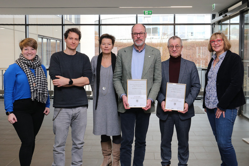 Eva Ochs freut sich über die große Unterstützung, die ihr Projekt innerhalb und außerhalb der Hochschule erfahren hat. Zum Dank überreichte sie gemeinsam mit dem Transferbüro der FernUniversität Urkunden an Dr. Tayfun Belgin, Leiter des Fachbereichs Kultur der Stadt Hagen und Direktor des Osthaus Museums, sowie an Thorsten Kröger, Leiter des Büros der Regionaldirektorin des RVR. Die fertigen Filme werden in verschiedene museale Projekte einbezogen – etwa in der Route Industriekultur des RVR. „Außerdem setzen wir die Filme natürlich in der FernUni-Lehre ein“, verspricht Eva Ochs. „Erfahrungsgemäß interessieren sich unsere Studierenden sehr für das Thema.“