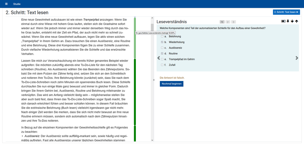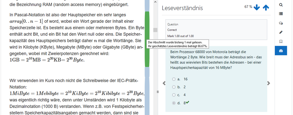 Reading is a key gateway to knowledge in all areas of education. The Moodle plugin Longpage supports students in reading longer study texts through various functions.