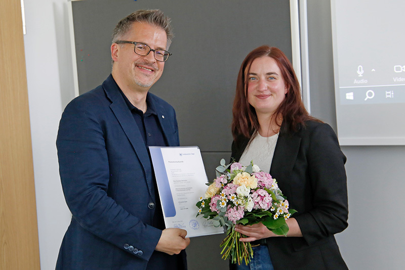 In ihrer Arbeit untersuchte sie FernUni-Studierende, um die Distanzlehre mit ihren Stärken und Herausforderungen zu beleuchten. Sie fand heraus: Die eigene soziale Identität spielt im Distanz-Lernen durchaus eine Rolle. Besonders Studierende mit chronischer Erkrankung oder Behinderung, mit Kindern, Berufstätigkeit oder mit anderer Muttersprache befürchten, Stereotype über ihre jeweilige Gruppe zu bestätigen. Nathalie Bick zeigte außerdem, dass diese Befürchtung mit einem geringeren Zugehörigkeitsgefühl zur FernUni zusammenhing und dass Studierende mit solchen Sorgen weniger gerne auf Kommiliton*innen zugehen.