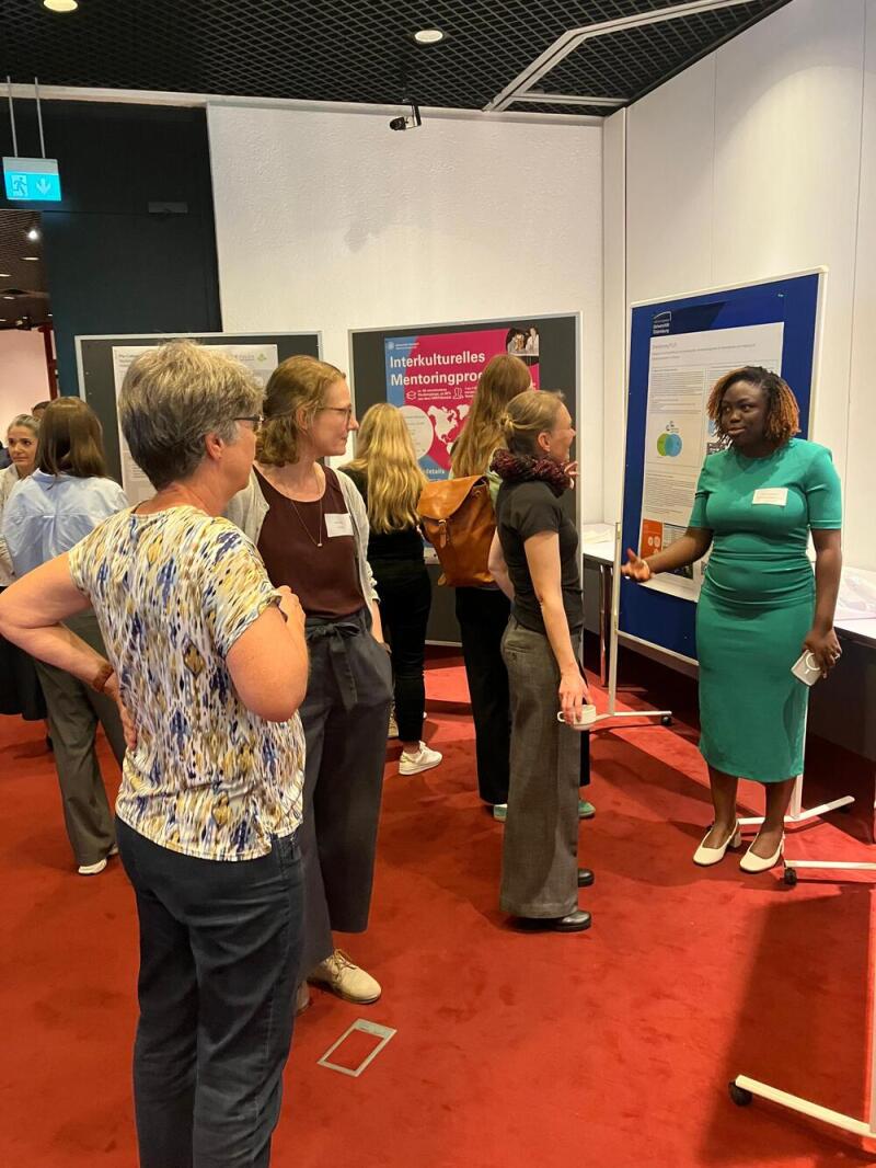 Den Bogen zur Praxis spannten Vertreter*innen der International Offices. Sie ergänzten den wissenschaftlichen Teil des Programms mit einer Posterpräsentation zu Praxisprojekten und Angeboten für internationale Studierende verschiedener Hochschulen. Teilweise setzen diese sogar bereits Handlungsempfehlungen aus den präsentierten Projekten um. Die Teilnehmenden nutzten die Gelegenheit zum Austausch über Best Practices und Herausforderungen in der Begleitung und Förderung internationaler Studierender. Auch für die Zukunft bot die Veranstaltung damit die Möglichkeit, Ergebnisse aus InterMINT in die Praxis zu bringen und so internationale Studierende noch besser unterstützen zu können.