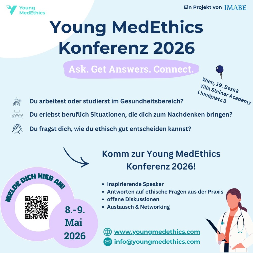 In diesem Zusammenhang möchten wir gerne auf eine Konferenz der YoungMedEthics im Mai diesen Jahres hinweisen. Weitere Informationen zur Veranstaltung finden Sie auf dem folgenden Flyer.