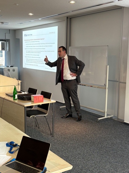 [16.12.2025]Am 9. Dezember 2025 hielt Herr Dr. Frank Spohnheimer im Rahmen seines Habilitationsverfahrens an der Fakultät einen Probevortrag mit anschließendem Kolloquium. In seinem 45-minütigen Vortrag setzte er sich differenziert mit dem Thema „Gewinnherausgabe bei Vertragsbruch“ auseinander. Mit dem erfolgreichen Probevortrag und Kolloquium hat Dr. Frank Spohnheimer sein Habilitationsverfahren abgeschlossen und führt nun den Titel Privatdozent (PD).