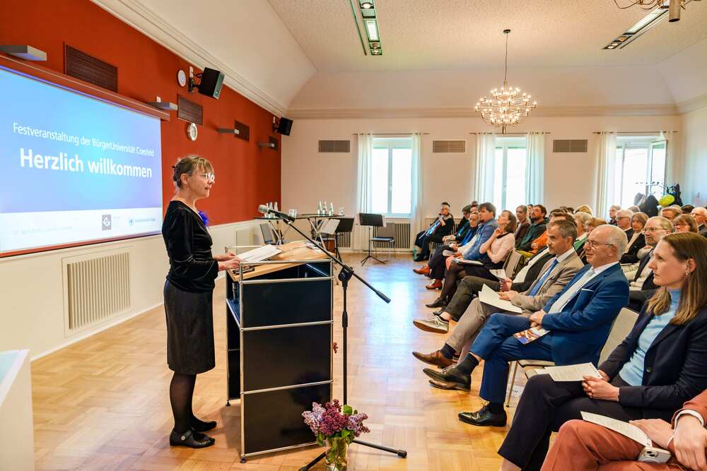„Ich möchte einen großen Dank aussprechen an die Stiftung und an die Stifterfamilie, dass sie die Förderung der Stiftungsprofessur weiterführt. Gerade in Zeiten, in denen Demokratie und Wissenschaft unter Druck stehen und in der das Verhältnis von Wissenschaft und Gesellschaft kritisch hinterfragt wird, ist es umso wichtiger, Institutionen und Personen zu haben, die sich für die Stärkung des Austausches zwischen Wissenschaft und Gesellschaft engagieren. Coesfeld ist für uns genau so ein Ort: Hier kommt Wissenschaft in die Gesellschaft hinein.“