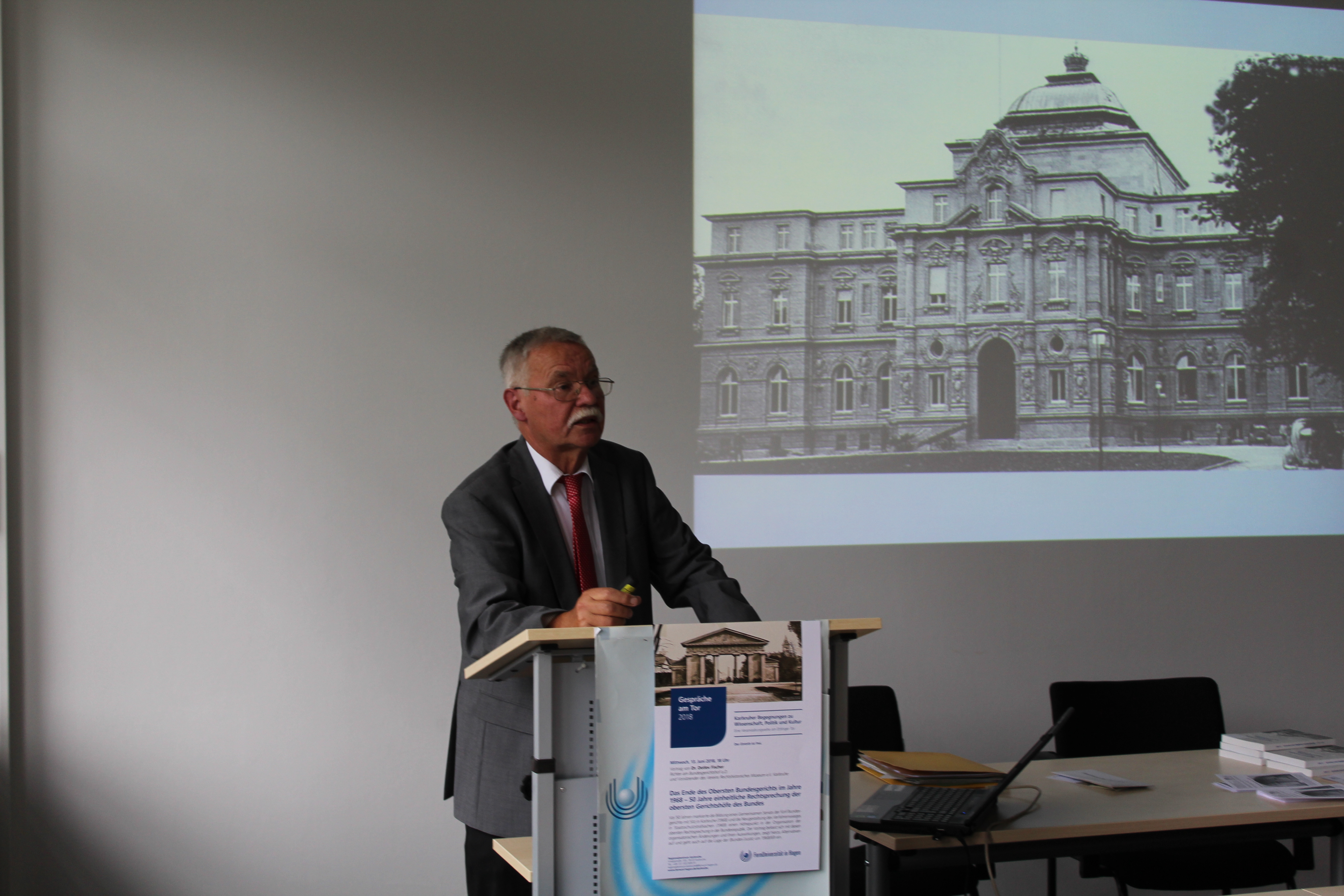 Das Jahr 1968 kann bekanntlich mit einem äußerst bewegten zeitgeschichtlichen Hintergrund aufwarten, der vermutlich dafür verantwortlich ist, dass eine in jenem Jahr vollzogene Verfassungsänderung in der geschichtlichen Betrachtung der westdeutschen Bundesrepublik eher geringe Aufmerksamkeit gefunden hat. In der Tat beschloss damals der Bundestag, kurz nach Verabschiedung der viel diskutierten Notstandsgesetze, eine kaum beachtete Neufassung des Artikels 95 des Grundgesetzes, der die einheitliche Rechtsprechung der obersten Bundesgerichte zum Gegenstand hat. Aus Anlass des 50. Jahrestages dieser Verfassungsänderung erinnerte Dr. Detlev Fischer (Richter am Bundesgerichtshof a.D. und Vorsitzender des Vereins Rechtshistorisches Museum e. V., Karlsruhe) in den „Gesprächen am Tor“ an die Lage der Bundesjustiz um 1968 und zog eine Bilanz der vor fünf Jahrzehnten getroffenen Weichenstellung für deren einheitliche Rechtsprechung.