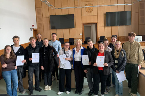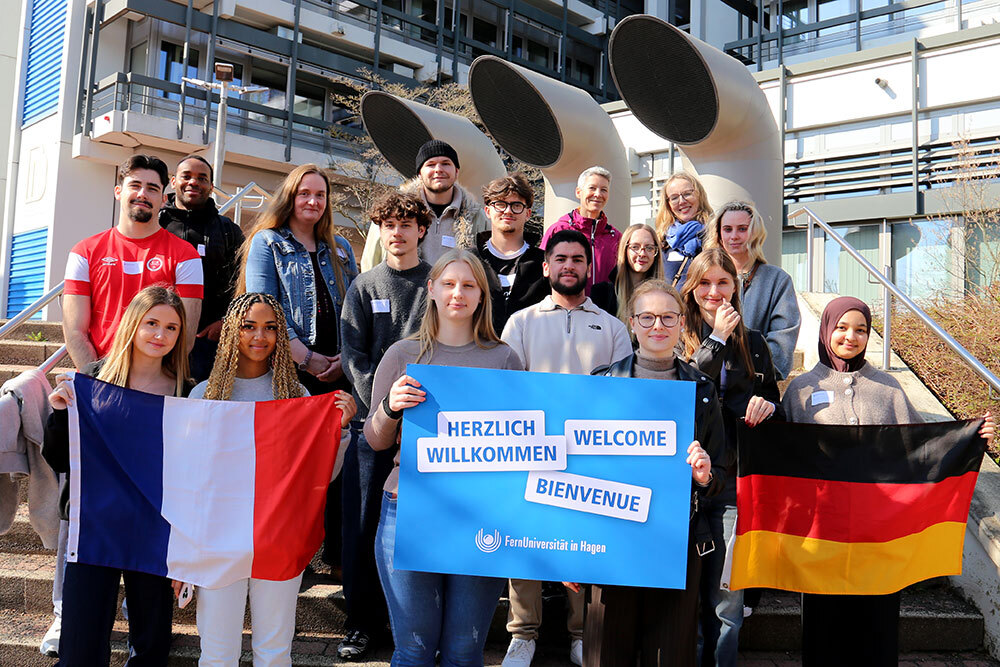 Französische Austauschschüler:innen aus Meaux haben im Rahmen eines Schulprojekts der Hagener Kaufmannsschule II die FernUniversität besucht. Organisiert wurde der Aktionstag von den beiden FernUni-Azubis Malin Schnitzler und Elena Becarevic.