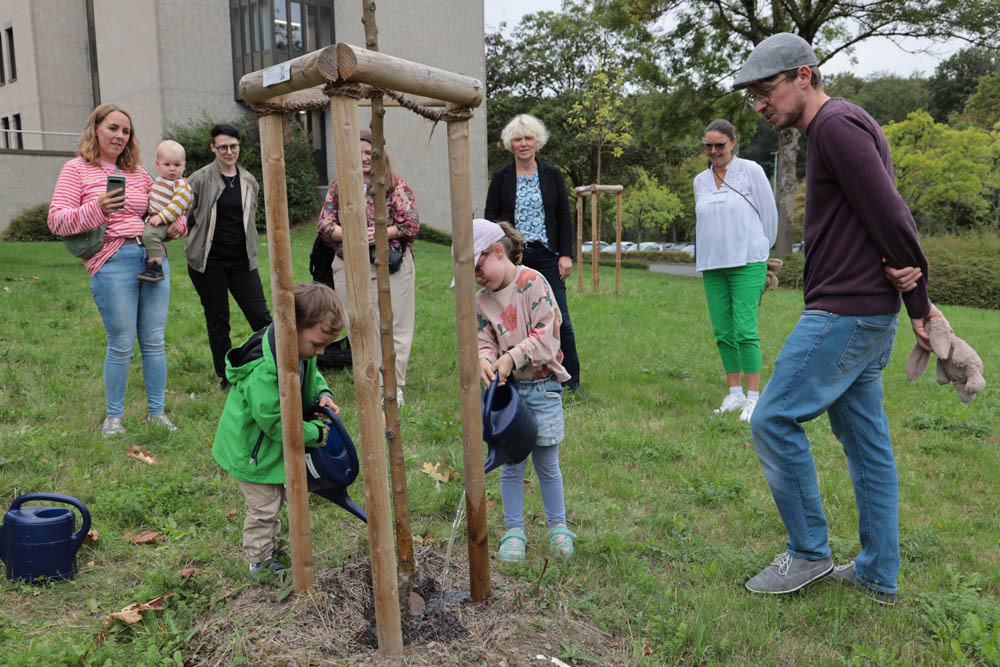 Die Streuobstwiese zwischen UB und Universitätsstraße wächst nicht nur im Wurzelwerk, sondern auch in ihrer symbolischen Bedeutung: Jedes Jahr wird dort eine Tafel aufgestellt, auf der die Vornamen und Geburtsdaten der jüngsten FernUni-Mitglieder verewigt sind. Ob Sina, Bruno oder Emma: Insgesamt 18 „FernUni-Babys“ wurden im vergangenen Jahr geboren. Ein Meilenstein für alle Eltern – und auch für die FernUni, die mit dieser sympathischen Aktion ihre Familienfreundlichkeit unterstreicht.