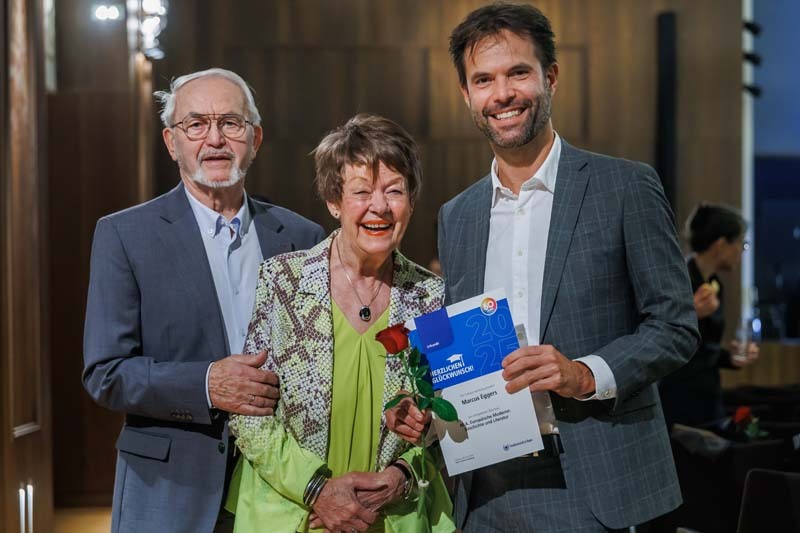 Auf jeder Alumnifeier gibt es sie: diese kleinen, besonderen Augenblicke, die den Abend einzigartig machen. Auf der diesjährigen Feier in Hamburg war es gleich ein ganzes Trio solcher Momente – angefangen beim bewegenden Auftritt des Ehepaars Marlene und Andreas Marko, die gemeinsam ihren Master in Politikwissenschaft absolviert haben. Mit Humor und Herz erzählten sie von durchlernten Nächten, gegenseitiger Unterstützung und der Kraft, die man in der Gemeinschaft findet. „So haben wir unsere Freizeit wenigstens gemeinsam verpasst und saßen in den späten Abendstunden nicht allein über unseren Hausarbeiten, sondern nebeneinander“, sagte Andreas Marko mit einem Lachen. „Wir haben gelernt, wir sind daran gewachsen und haben uns gegenseitig durch diese intensive Zeit getragen. Deshalb: Lasst uns heute nicht nur auf den Abschluss, sondern auf unsere unglaubliche Beharrlichkeit anstoßen. Darauf, dass wir jede Deadline, jede Korrektur und jede müde Stunde gemeistert haben“, ergänzte seine Ehefrau Marlene.