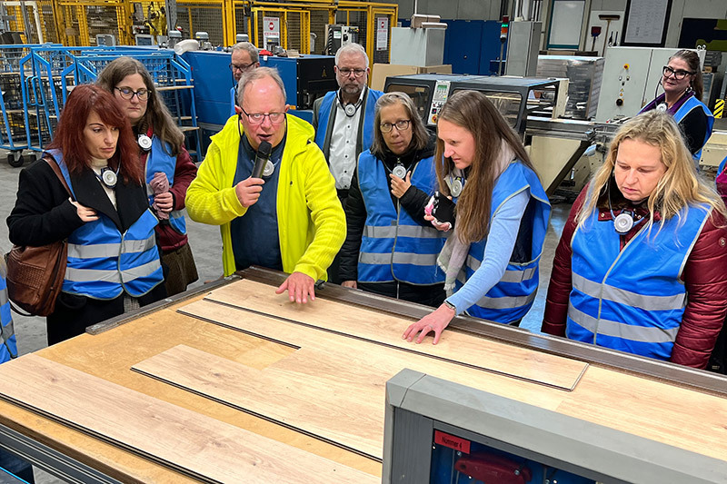 Nach einem gemeinsamen Mittagsimbiss bot eine Betriebsbesichtigung bei der Parador GmbH Gelegenheit, die zuvor besprochenen Themen in der Praxis zu erleben. Die Gäste erhielten Einblicke in moderne Produktionsprozesse, nachhaltige Produktentwicklung und innovative Arbeitskultur. Besonders deutlich wurde dabei, wie eng Weiterbildung, Unternehmensentwicklung und Nachhaltigkeit miteinander verknüpft sind.