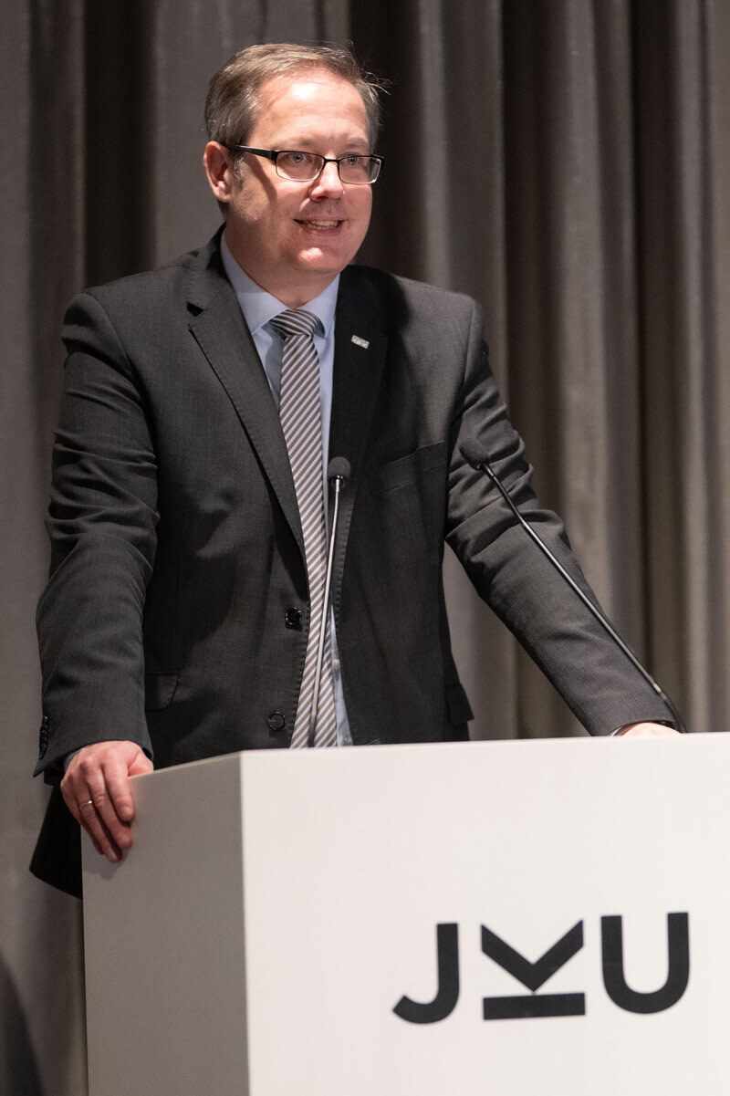 Dr. Josef Reif, Leiter des JKU Zentrums für Fernstudien, sprach über die wachsende Popularität des Fernstudiums: „Mit einem jährlichen Wachstum von rund 20 Prozent begleiten wir mittlerweile etwa 3.000 engagierte Studierende, die mit viel Durchhaltevermögen ihre akademischen Ziele verfolgen. Deren Erfolg wird im Rahmen der Alumni-Feier gewürdigt, die durch die Anwesenheit der Rektoren und Vertreter:innen beider Universitäten eine besondere Wertschätzung erfährt.“