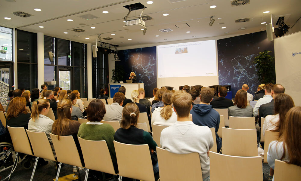 Neben Wissenschaftler:innen der FernUniversität nahmen auch Vertreter:innen aus Verwaltung, Kliniken und Verbänden an der Tagung teil. Dieser Austausch sei essenziell, betont Wesche: „Innovation entsteht im Dialog – zwischen Wissenschaft, Praxis, Politik und Gesellschaft. Genau diesen Dialog führen wir etwa beim Forschungssymposium.“