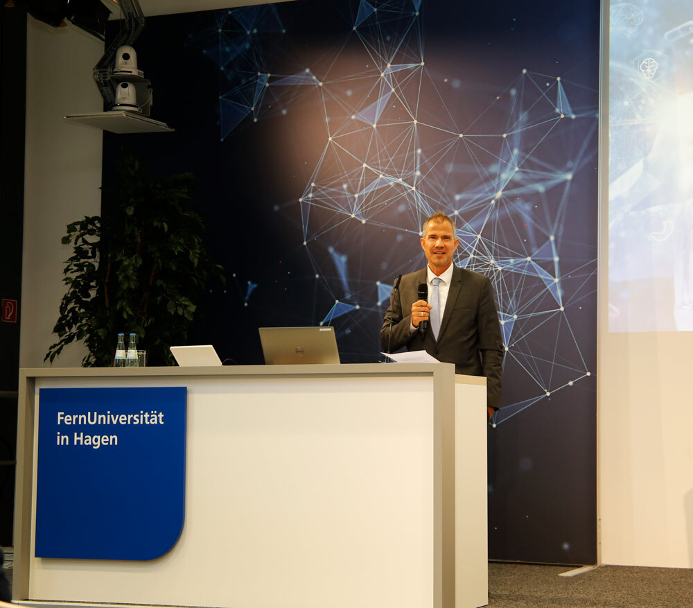 Der Rektor unterstrich zugleich den hohen Stellenwert, den die FernUniversität digitalen Innovationen beimisst: „Unsere Forschenden tragen dazu bei, den Weg zur daten- und digitalbasierten Universität konsequent weiterzugehen – und wissenschaftliche Erkenntnisse für die Gesellschaft nutzbar zu machen.“
