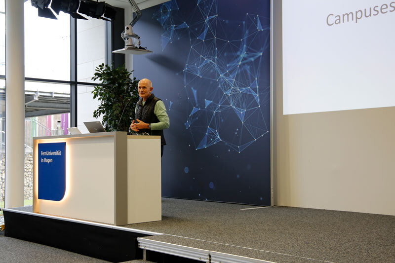 Gemeinsam mit Dr. Jan-Bennet Voltmer und Dr. Johanna Werner (Lehrgebiet Sozialpsychologie) erkundeten die Gäste am ersten Tag den Campus der FernUniversität und wurden von Rektor Prof. Dr. Stefan Stürmer herzlich begrüßt. Die Studierenden und Mitarbeitenden der UNAM lernten das Zentrum für Lehre und Innovation (ZLI) und den Immersive Collaboration Hub am Campus kennen. Dabei wurden sie von verschiedenen Mitarbeitenden der FernUni begleitet. Dazu gehörten unter anderem Prof. Dr. Christel Salewski (Lehrgebiet Gesundheitspsychologie), Prof. Dr. Jan Dettmers (Lehrgebiet Arbeits- und Organisationspsychologie) und Prof. Dr. Robert Gaschler (Lehrgebiet Allgemeine Psychologie: Lernen, Motivation, Emotion).