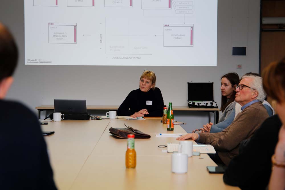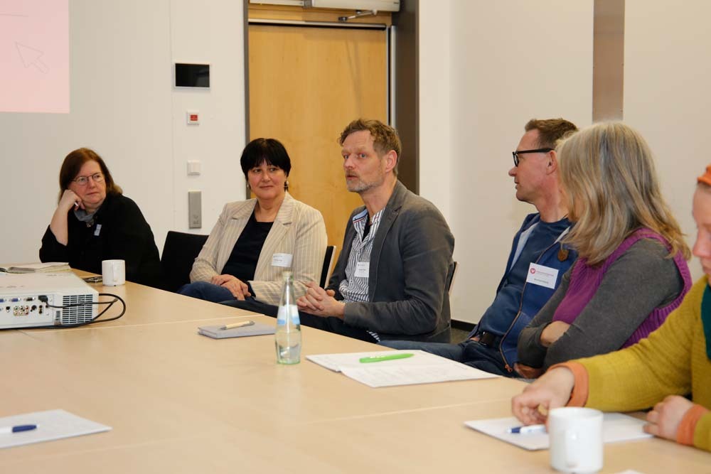 Gemeinsam mit den Vertreterinnen und Vertretern der Effizienz-Agentur NRW am Standort Hagen dem Energieversorger Enervie, dem Umweltamt und Hagener Nachhaltigkeitsinitiativen ging es um Wege zu einer klimaneutralen Energie- und Wärmeversorgung vor Ort (Dr. Julia Reinermann, Hannah Müller). Hagens Europabeauftragter Pascal Putsch brachte Perspektiven zur kommunalen Umsetzung der Agenda 2030 ein, während eine weitere Arbeitsgruppe (Landeszentrale für politische Bildung NRW, Freiwilligenzentrale, AllerWeltHaus Hagen und Fachbereich Kultur) die Stärkung demokratischer Institutionen und gesellschaftlicher Teilhabe in der Region in den Fokus rückte (Prof. Dr. Christian Grabau).