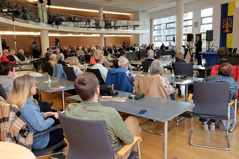 Inwiefern ist der Klimawandel schuld für extremes Wetter? Wie schütze ich mein Haus vor Starkregen und Hochwasserfolgen? Wie verhalte ich mich bei Hochwasser richtig? Und wie arbeite ich das Erlebte mit Kindern auf? Im Plenum und an den Infoständen wurde rege diskutiert.