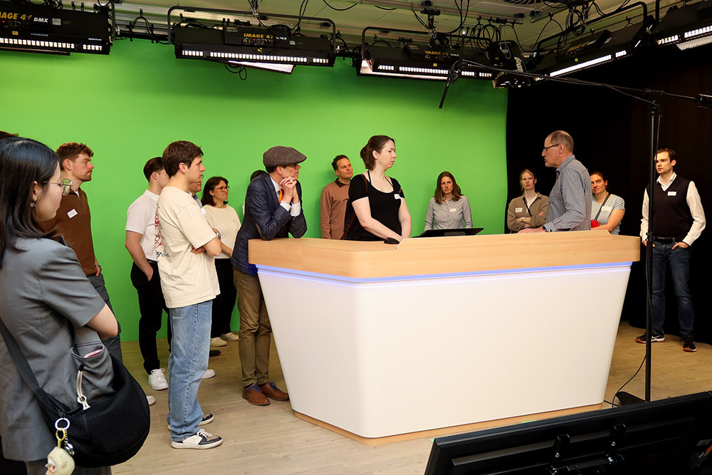 Anschub für diese Vernetzung gab es bei einem Speeddating. Was machst du außerhalb des Studiums und was motiviert dich, waren die Fragen, über die die Studierenden innerhalb von jeweils drei Minuten miteinander sprachen. Und schon dabei wurde klar: Die Palette ist bunt. Während der eine über eine Nachhilfeplattform erzählte, auf der er sich engagiert, berichtete die andere von ihren zwei Kindern oder von ihrem Beruf. Zuvor hatten die Stipendiat:innen bereits bei einer Campusführung Einblicke in ihre Uni und dabei insbesondere ins hauseigene Videostudio bekommen.