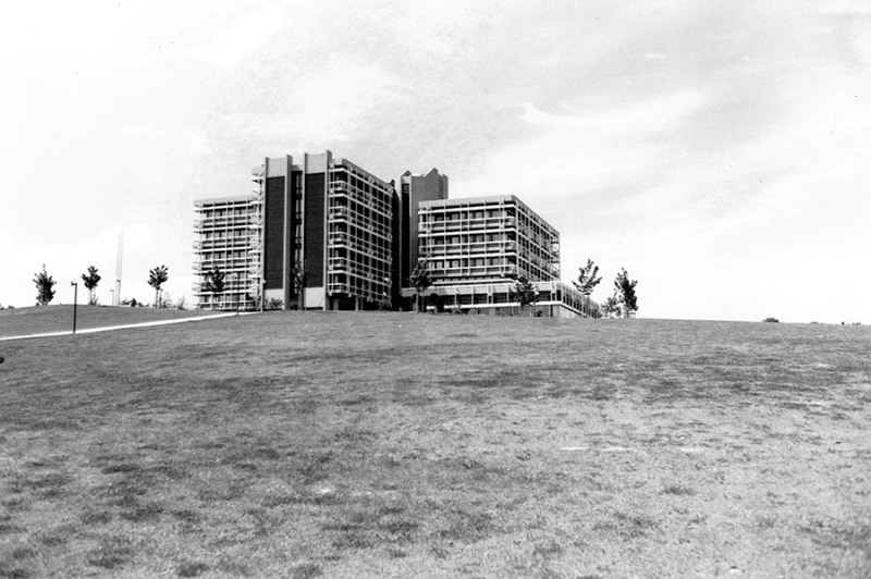 Foto: FernUniversität1. Januar 1980: Mit dem Allgemeinen Verfügungszentrum (AVZ) entsteht das erste Gebäude auf dem Campus der FernUniversität. Es befindet sich in unmittelbarer Nähe zu den Autobahnen A 45 und A 46. Zuvor standen für die einzelnen Bereiche der Hochschule nur angemietete Wohnungen und Gebäude innerhalb und außerhalb Hagens zur Verfügung. Im Laufe der Jahre und Jahrzehnte kamen das Philipp-Reis-Gebäude (PRG), das Eugen-Schmalenbach-Gebäude (ESG), ein Neubau für die Kultur- und Sozialwissenschaften (KSW) sowie das ehemalige Technologie- und Gründerzentrum (TGZ) mit dem Informatikzentrum (IZ), die Universitätsbibliothek (UB) und die Mensa hinzu.