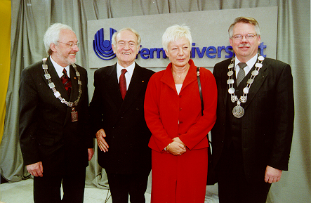 Foto: FernUniversität1. Oktober 2005: Die FernUniversität feiert den 30. Jahrestag, seit Start des Studienbetriebs im Wintersemester 1975/76. Zum Dies Academicus ist auch NRW-Innovationsminister Prof. Andreas Pinkwart für eine Podiumsdiskussion vor Ort in Hagen. Mit ihm diskutieren Rektor Prof. Dr.-Ing, Helmut Hoyer, Dr. Jörn Kreke (GdF-Vorsitzender) und Persönlichkeiten aus Wissenschaft und Gesellschaft. Thema der Diskussion: Wie funktioniert unternehmerisches Handeln an Hochschulen?